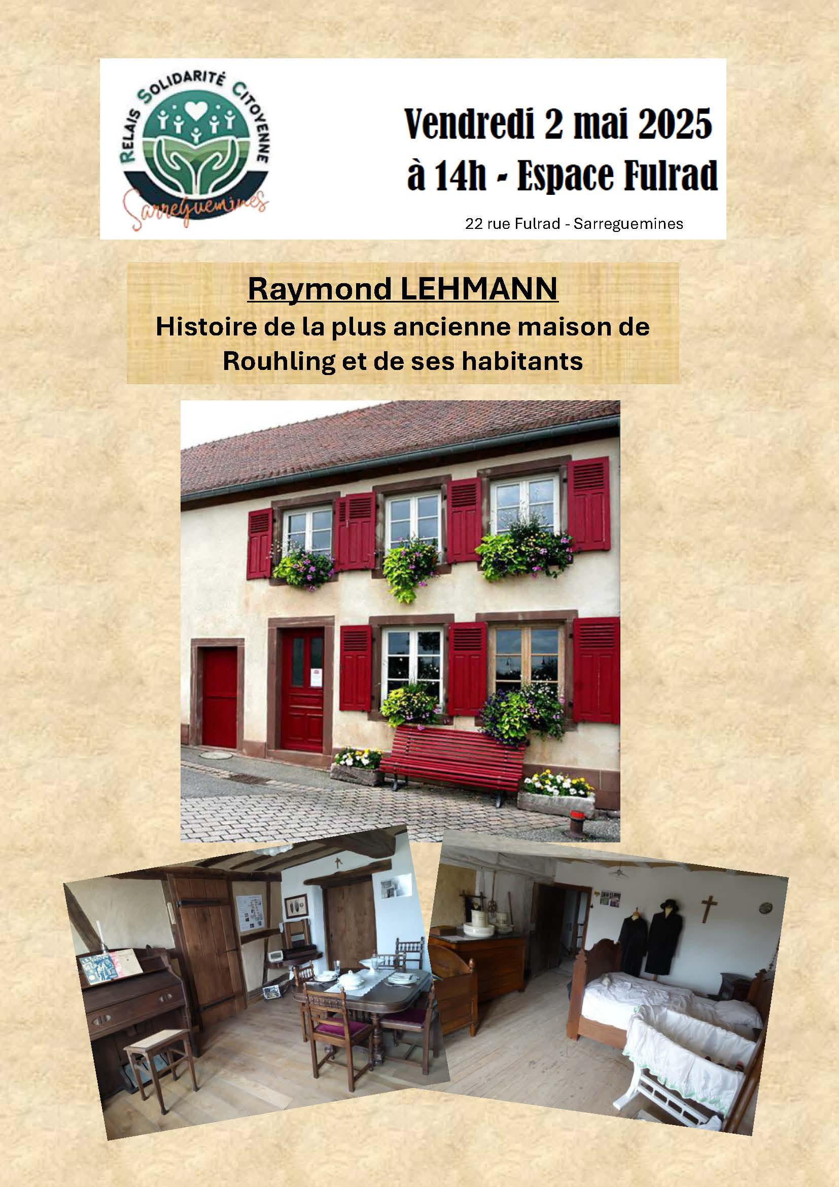 La Maison des Arts et des Traditions de Rouhling est une maison datant du 17ème siècle, qui a conservé les attributs de la ferme lorraine du 19ème siècle, avec les trois « travées caractéristiques » d’une maison de cultivateur : le logis, l’étable, la grange. A l’intérieur vous découvrirez : la belle pièce, la cuisine, l’âtre avec son fumoir et son four à pain, la cave voutée, les chambres avec les murs et plafonds en torchis et l’étable qui a conservé son pavage et sa mangeoire d’origine. Les autres volumes et surfaces ont été réaménagées en salles d’expositions présentant des maquettes de bâtiments anciens de la commune, une ancienne salle de classe et la présentation de nombreux métiers d’antan. A l’arrière de la maison, un espace paysager avec différents secteurs : potager, plantes médicinales et aromatiques, fleurs, roseraie, …, exposition de petites machines agricoles.