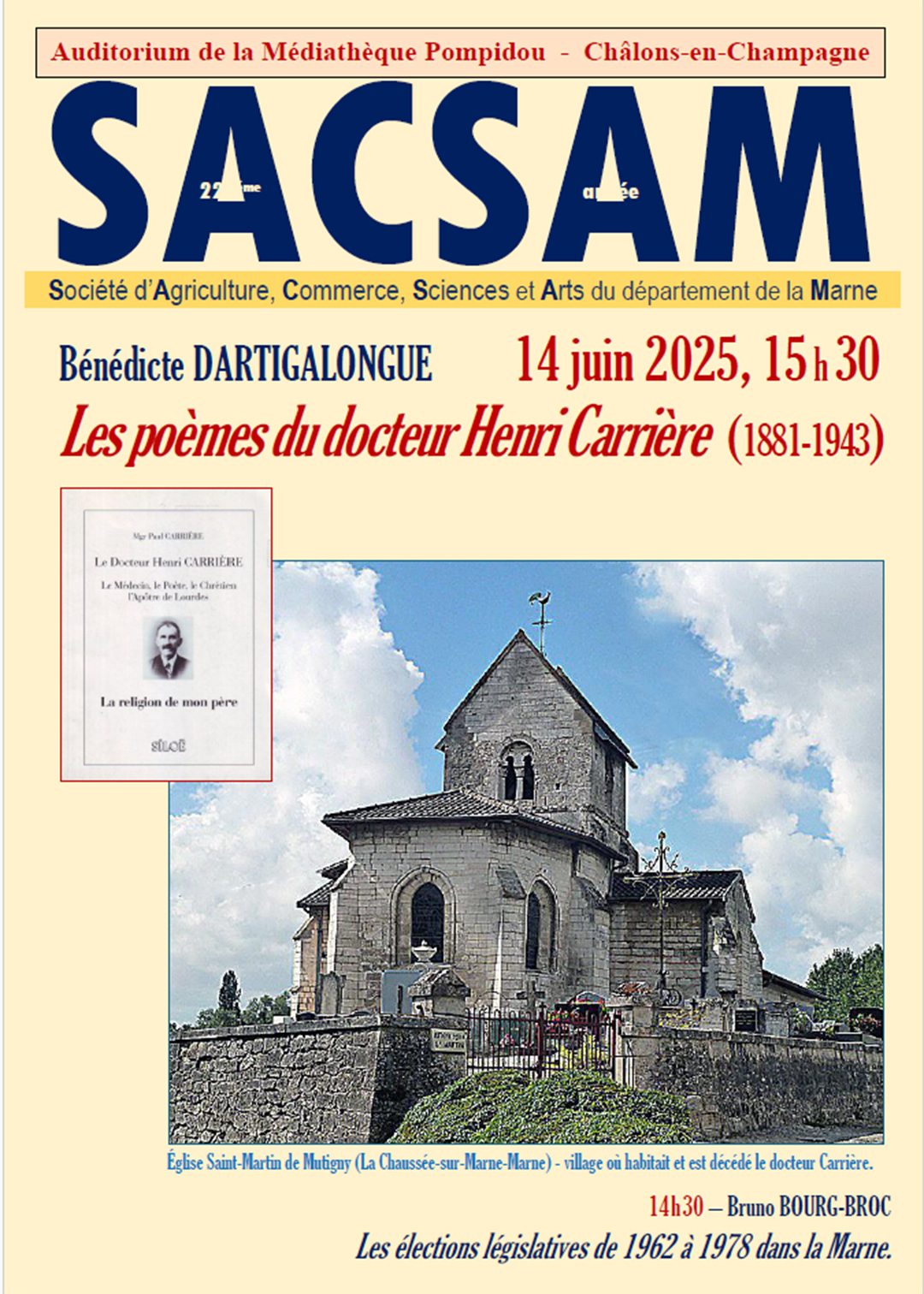 Elle organise une fois par mois la tenue d’une séance de deux conférences à Châlons-en-Champagne, le 3e samedi du mois.