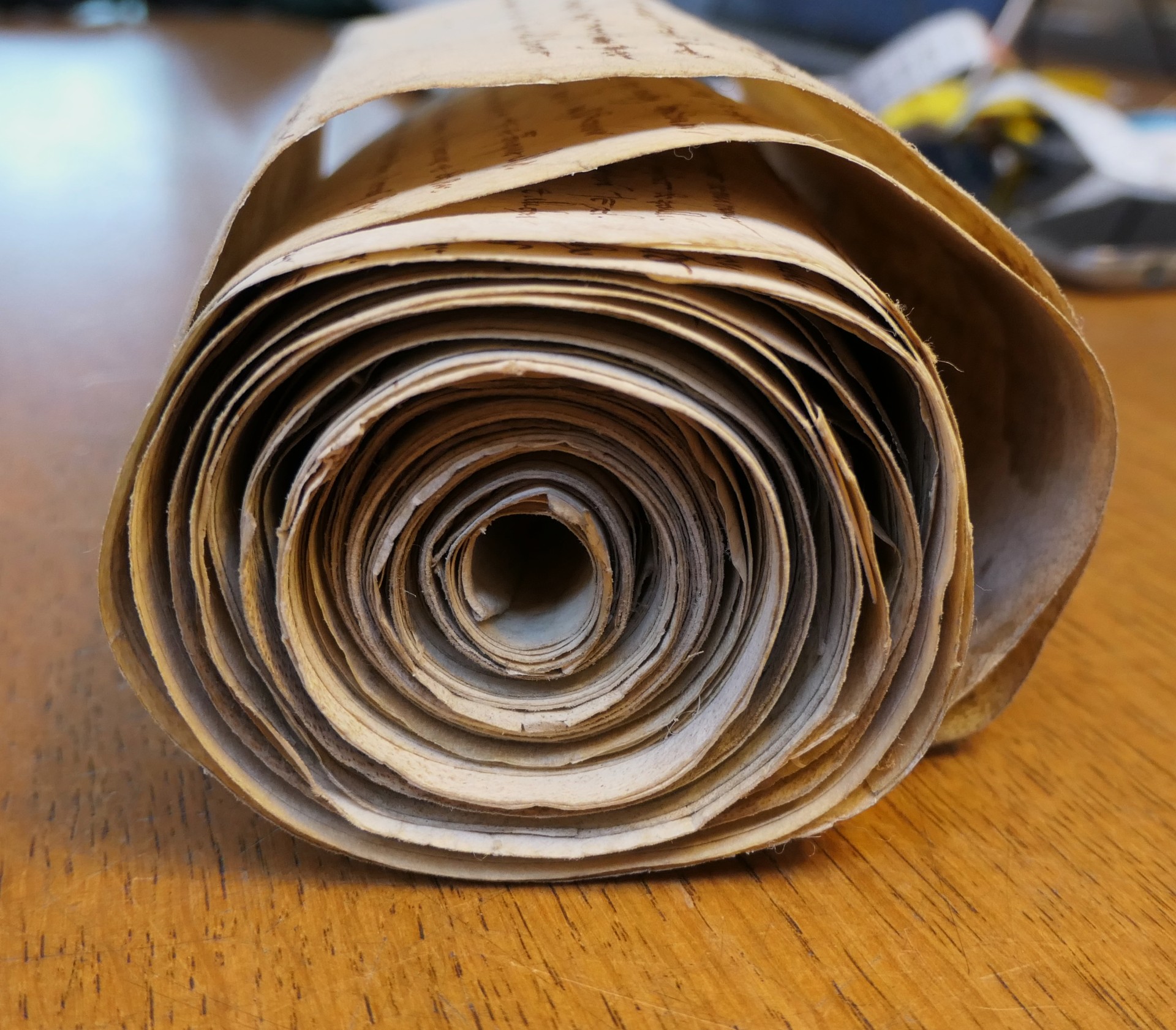 « Dérouler l’écrit au Moyen Age », tel est l’intitulé de cette conférence passionnante d’une heure consacrée aux rouleaux de parchemin employés au Moyen Âge pour des usages variés : liturgie, théâtre, généalogies…