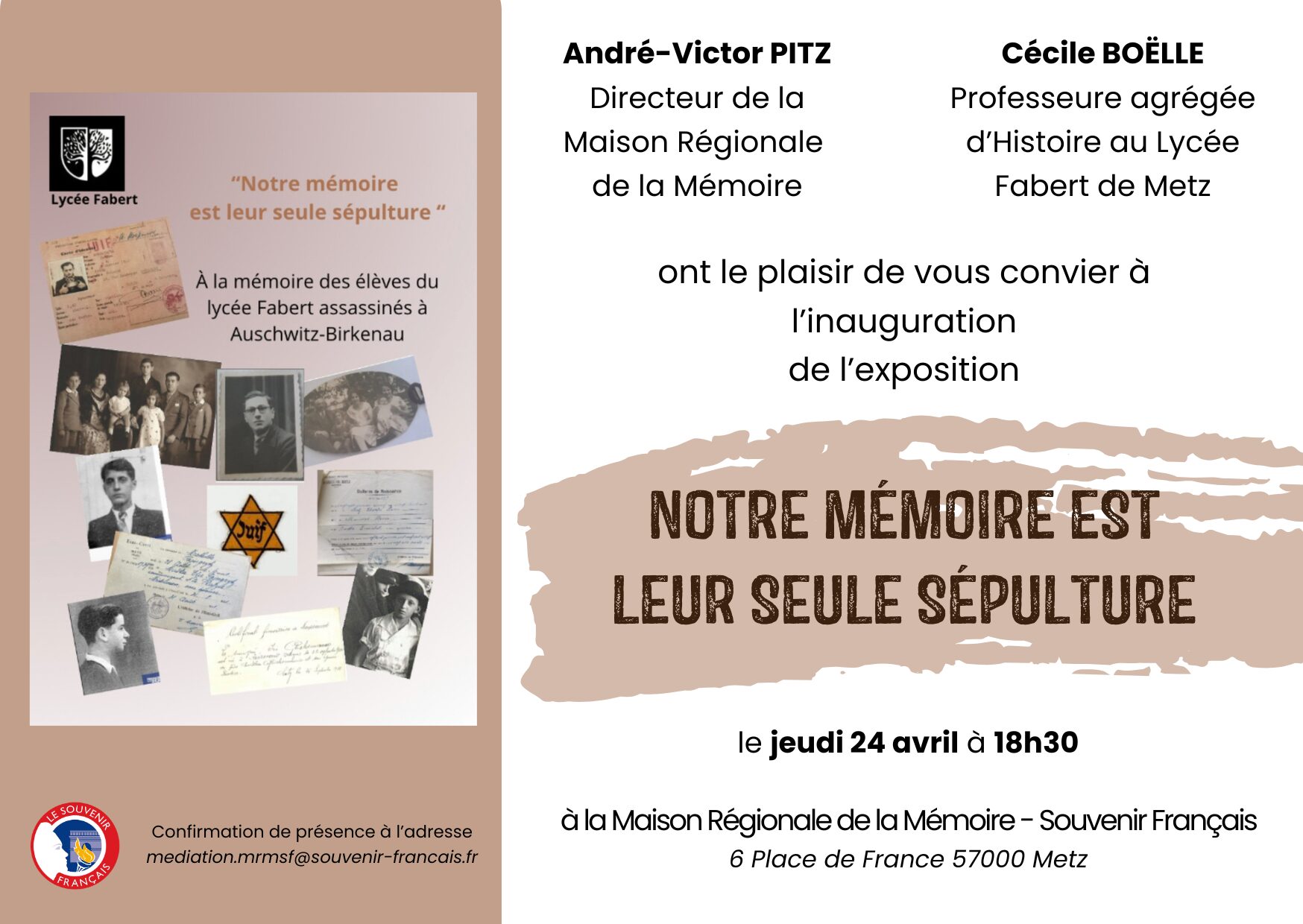 Cette exposition, présentée originellement au Musée de l’ordre de la Libération à Paris du 7 février au 8 mai 2022, prend aujourd’hui place à la Maison Régionale de la Mémoire – Souvenir Français à Metz. L’occasion pour C215 et Le Souvenir Français d’inaugurer des portraits inédits de Compagnons de la Libération originaires du Grand Est, et ainsi, leur rendre hommage.