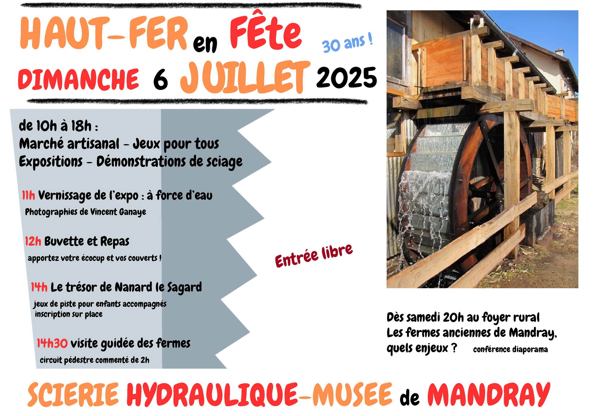 En ouverture de la saison estivale et pour fêter ses 30 ans, l’association Le Haut-Fer organise une fête autour de la scierie hydraulique – musée de Mandray.