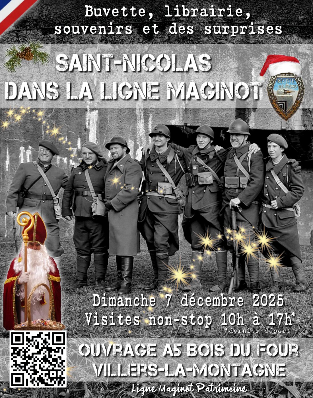 Guides en tenue Maginot, restauration, buvette, brocante militaria, librairie, souvenirs…