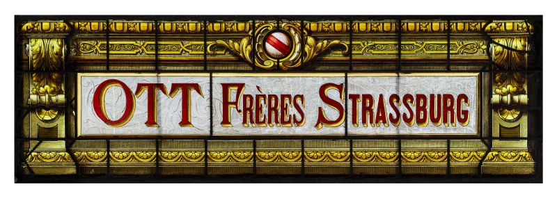 Rencontre autour d’une nouvelle acquisition: l’enseigne de l’entreprise Ott Frères Vitrail, entreprise située (entre 1852 et l’après Seconde Guerre mondiale) à la Cour du Corbeau à Strasbourg. L’entreprise a réalisé des vitraux pour des bâtiments civils à Strasbourg et dans la région. Elle a également mené des campagnes de restauration des vitraux de la cathédrale à la fin du XIX e siècle.