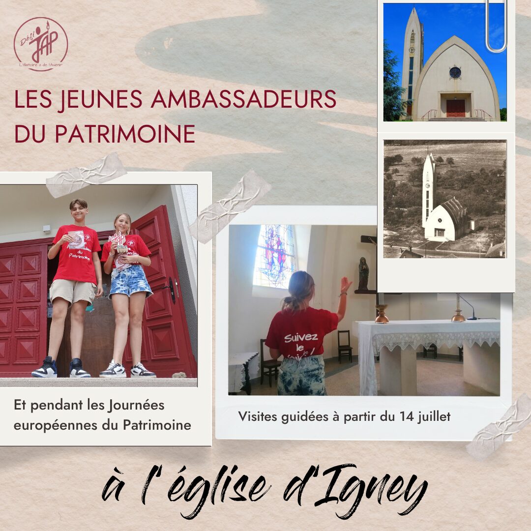 Tout l’été, de 14h à 17h, les Jeunes Ambassadeurs du Patrimoine vous accueillent avec enthousiasme à l’église Saint-Martin d’Igney. Venez découvrir – ou redécouvrir – ce joyau du patrimoine local à travers leurs yeux passionnés et leurs explications vivantes.
